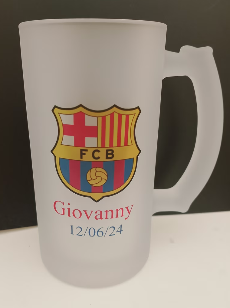Cerchi il regalo perfetto per gli amanti della bionda? Il nostro boccale da birra in vetro ghiacciato personalizzato combina eleganza e funzionalità. Con una capacità di 500 ml e una finitura satinata "effetto ghiaccio", mantiene la tua bevanda fresca più a lungo. Personalizzalo con foto, loghi o scritte con una stampa a colori ad alta definizione, resistente e lavabile in lavastoviglie.